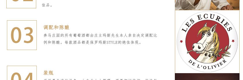 葡萄品種:28%歌海娜,25%美樂,24%西拉,8%赤霞珠,8%慕合懷特,7%品麗珠