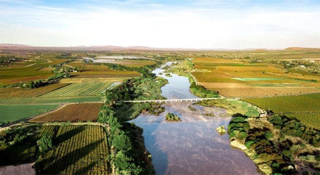 接著我們再來看看布里厄河谷。這個大區級產區在南非的葡萄種植和葡萄酒產量方面的比重都比較大,次級產區包括伍斯特(Worcester)和羅貝爾森(Robertson)等。伍斯特產酒量比較大,約占南非葡萄酒總產量的1/4。另外,伍斯特還是重要的白蘭地(Brandy)產區。白詩南、鴿籠白(Colombard)和長相思是該產區最重要的白葡萄品種,紅葡萄品種則以西拉、赤霞珠和皮諾塔吉為主。羅貝爾森主打果味濃郁型的西拉紅葡萄酒及霞多麗白葡萄酒,也出產由霞多麗和黑皮諾釀造的起泡酒。