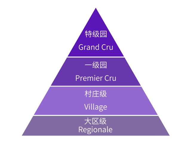 波爾多以酒莊為單位,將酒莊劃分為不同等級,誕生了1855分級和圣埃美隆(Saint-Emilion)分級等分級制度。與波爾多不同,勃艮第更注重風(fēng)土,以風(fēng)土為依據(jù),將不同的葡萄園劃分為特級園(Grand Cru)、一級園(Premier Cru)、村莊級(Village)和大區(qū)級四個等級。