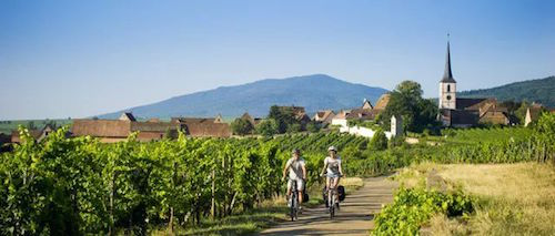阿爾薩斯產區有一條100多公里的騎行線路,在這里騎行,最大的樂趣就是沿途參觀大大小小的酒莊、葡萄園。不過,由于一路上坡道與彎道較多,騎行還是有一定難度的。