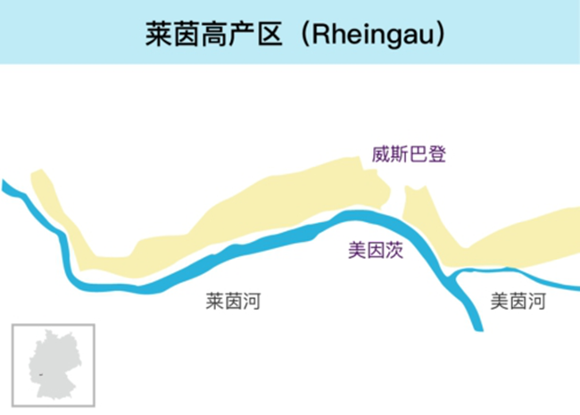 萊茵高是德國最小但最重要的葡萄酒產(chǎn)區(qū)之一,也是世界上知名的優(yōu)秀葡萄酒產(chǎn)區(qū)。萊茵高位于威斯巴登( Wiesbaden)和勞赫豪森(Lorchhausen)之間,整個產(chǎn)區(qū)沿萊茵河分布,由西而東地形從寬闊的平原逐漸變?yōu)槎盖偷男逼拢吧謨?yōu)美。