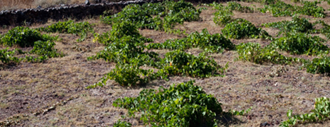 該島大多數(shù)葡萄園都位于該島的南部和西南部,地處由火山噴發(fā)而形成的火山巖和沙質(zhì)土壤中,其水分和有機物的含量幾乎為零,因此可有效避免葡萄根瘤蚜(Phylloxera)的入侵。為了保護園內(nèi)樹藤與果實免受當?shù)氐膹婏L吹襲,葡萄種植者們將藤枝修剪成低矮的簍子形狀,使葡萄在其內(nèi)側(cè)生長。然而,海風能夠促進空氣的流通,防止葡萄樹滋生疾病與腐爛,從而維持葡萄的健康生長。