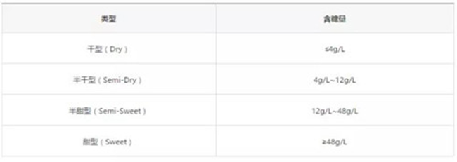 葡萄酒據(jù)含糖量分類標準圖