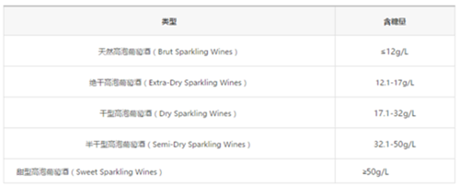 起泡酒據(jù)含糖量分類標準圖