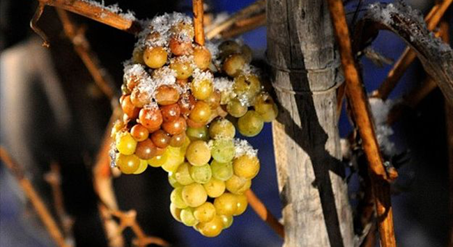 就如許多發(fā)明一樣,冰酒的誕生也是一次意外。據說在十八世紀末的德國,葡萄還沒來得及采收,就遭遇了嚴寒天氣,釀酒師們被迫用結冰的葡萄來釀造葡萄酒,結果卻意外得到了香氣純凈馥郁、口感甜蜜誘人的佳釀。采用結冰葡萄釀酒的方法便由此在德國逐漸流傳開來。