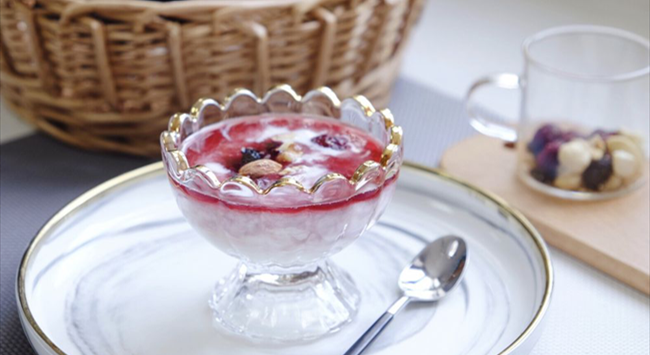 為了令冰酒的口感更為平衡,飲用前,一般需要將其充分冰鎮(zhèn)至6℃-8℃。因其口感甜美,冰酒非常適合與甜品糕點搭配飲用,可以嘗試搭配軟奶酪,如布里干酪和淡味山羊奶酪,或者簡單的香草甜點,如酸奶意式奶凍、酸奶油磅蛋糕和冰淇淋。搭配食物的甜度也有所講究,最好不要高于冰酒。