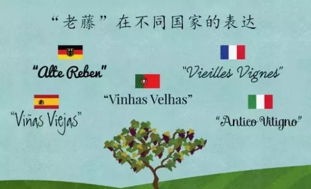 酒標上除了會看到Old Vine之外,法國在酒標上用VV或Vieilles Vignes(法文老藤的意思) 表示老藤,德國用 Alte Reben,葡萄牙用 Vinha Velha。