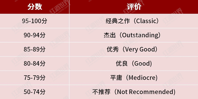 為了提升雜志的內(nèi)容質(zhì)量,WS在給新發(fā)布的酒款做品評(píng)的同時(shí),也在不斷改進(jìn)自己的評(píng)價(jià)機(jī)制。從修正版加州大學(xué)戴維斯分校九分制(Modified UC Davis Nine-point Scale)到歐洲二十分制,再到挑選出“觀者之選(Spectator Selections)”、“高性價(jià)比(Best Buys)”和“不推薦(Not Recommended)”酒款,WS對(duì)葡萄酒的評(píng)價(jià)機(jī)制幾經(jīng)變換。1985年,WS決定采用百分制來評(píng)價(jià)葡萄酒并沿用至今。百分制以50分為起評(píng)分,將酒款劃分為六個(gè)等級(jí):