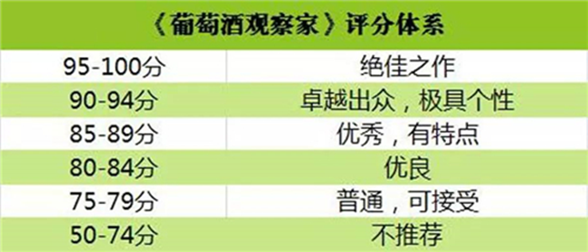 全世界著名的百分制評分體系有:《葡萄酒觀察家》、《葡萄酒愛好者》、《葡萄酒倡導(dǎo)家》(Wine Advocate)、《葡萄酒與烈酒》(Wine and Spirit)和《醇鑒》(Decanter)這5大評分體系。