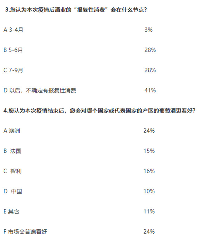 4. 48%的企業認為疫情結束后,葡萄酒市場會更被普遍看好。