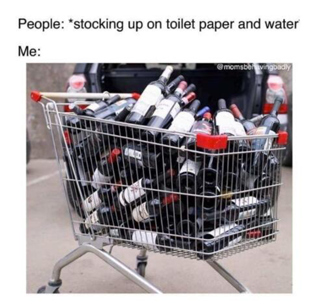 ◆來自美國爾灣的ScanMyPhotos.com:忘了衛生紙吧,我只看到有人在購物車里裝滿了葡萄酒,這已經是他們推出的第二輛購物車了。他們笑著說:“如果我要被困在家里,必備的東西一定是酒!”