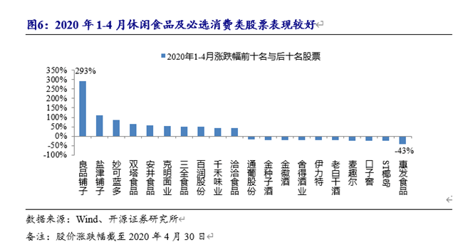 疫情期間消費場景發(fā)生變化,封城、封路、居家隔離使得消費者更多集中在家庭消費,具有居家囤貨需求的必選消費以及具備“宅文化”屬性的休閑食品表現較好。其中,葡萄酒品類中的通葡股份有著較突出表現。