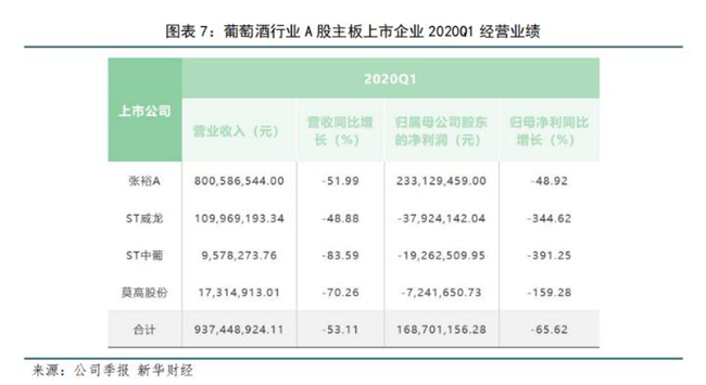 新冠肺炎疫情對(duì)于本就脆弱的葡萄酒行業(yè)來講,無(wú)疑是一記重錘。2020年第一季度,四家葡萄酒企業(yè)總營(yíng)收9.37億元,同比降低53.11%;實(shí)現(xiàn)歸母凈利1.69億元,同比降低65.62%。只有張?jiān)R患覛w母凈利維持正值,其余皆為虧損。業(yè)內(nèi)人士曾表示“葡萄酒行業(yè)'短期不樂觀',2020年將是國(guó)內(nèi)葡萄酒市場(chǎng)近十年來最艱難的一年。”