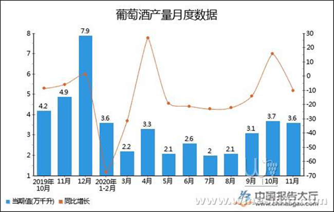 以上就是2020年1-11月全國葡萄酒產(chǎn)量統(tǒng)計(jì),數(shù)據(jù)來源于國家統(tǒng)計(jì)局及中國報(bào)告大廳數(shù)據(jù)中心整理發(fā)布,僅供參考。