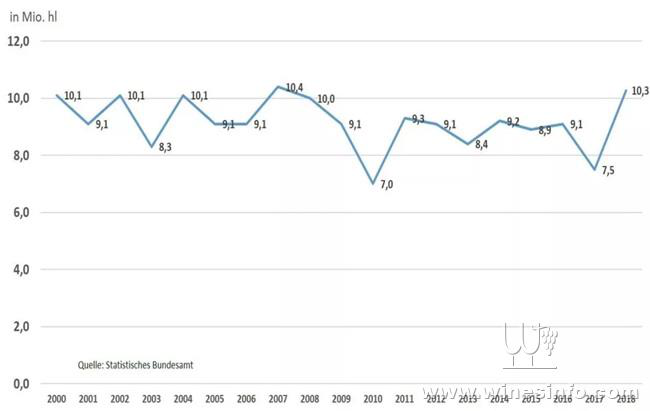 2018年德國葡萄酒的全國產(chǎn)量達到10.27億升。這個數(shù)值略低于2018年10月發(fā)布的10.67億升估計值。最新數(shù)據(jù)由德國葡萄酒協(xié)會(DWI)根據(jù)聯(lián)邦統(tǒng)計局的最終收獲結(jié)果予以發(fā)布。
