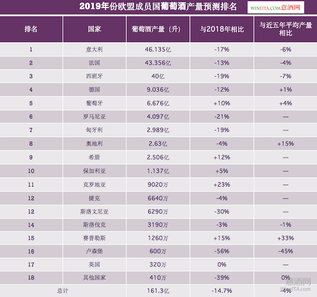 • 歐盟發布2019年份各國葡萄酒產量報告 意大利蟬聯產量冠軍