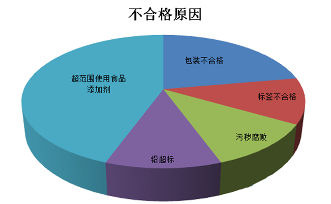 未準入境產品不合格原因主要涉及包裝不合格、超范圍使用食品添加劑、標簽不合格、污穢腐敗、鉛超標。其中,超范圍使用食品添加劑4批次,包裝不合格2批次。