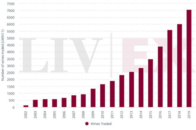 Liv-ex上交易的獨立葡萄酒(LWIN11)*數量創新高