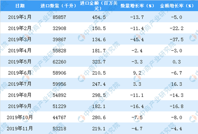 • 2019年1-11月中國葡萄酒進口量同比下降10.6%
