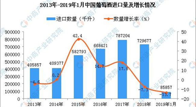 2019年1月中國葡萄酒進口量同比下降13.7%